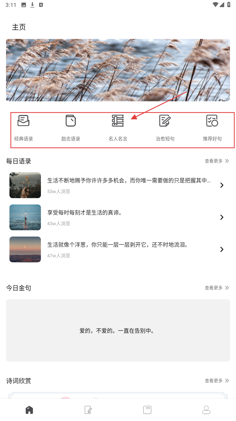 2、沉浸式阅读体验:采用极简排版与护眼模式,每段语录搭配原创意境插画,支持滑动翻页与背景音乐搭配,营造专注的文字欣赏氛围。