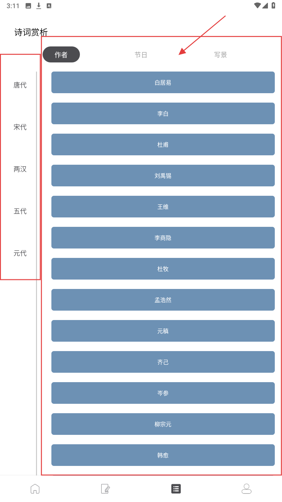 2、在【诗词欣赏】板块,按朝代(唐代、宋代等)筛选,选心仪作者。