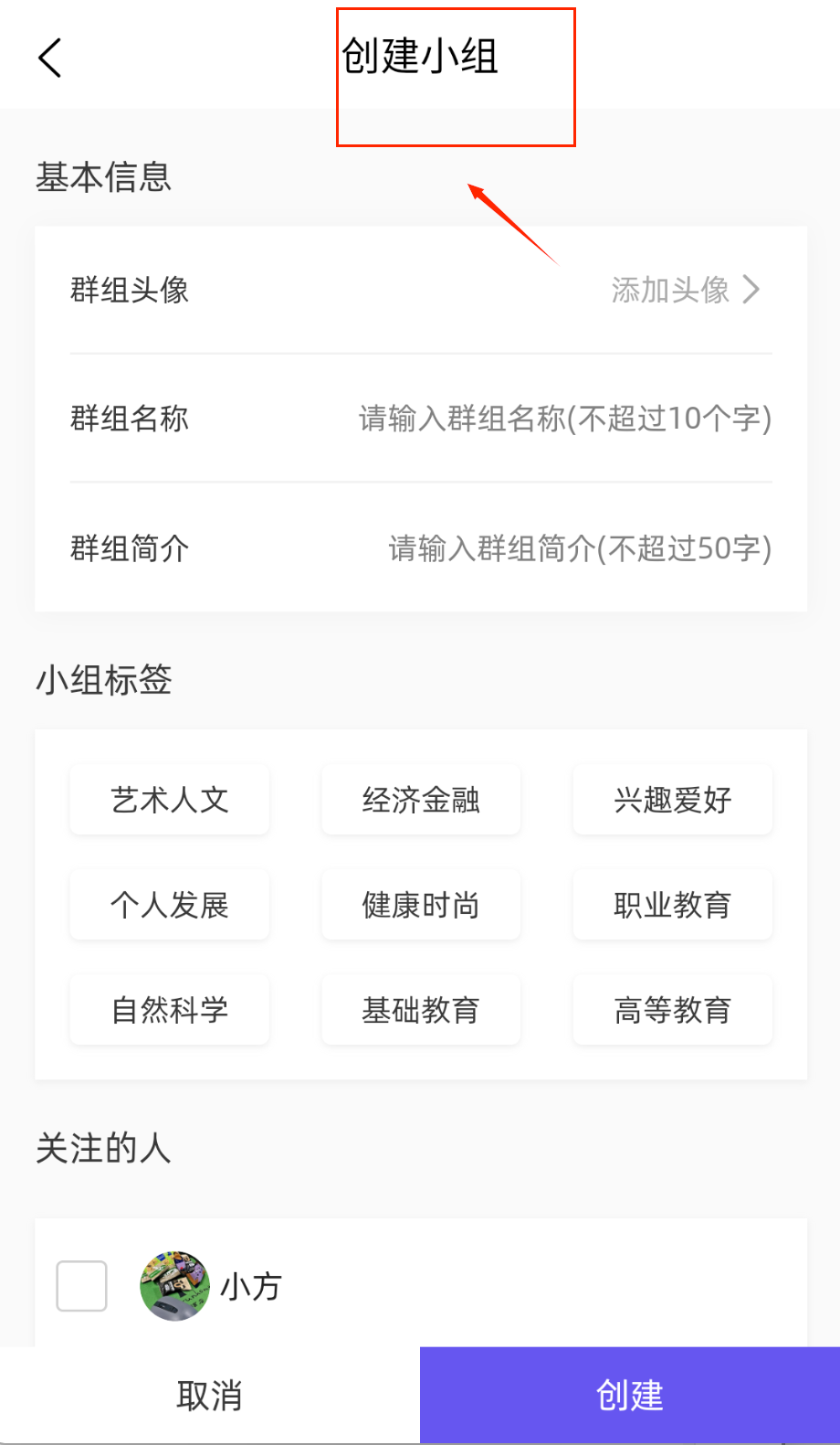 1、使用账号登录后进入功能中心页面,点击创建小组按钮并填写小组名称、简介内容和相关标签信息,确保描述清晰准确。