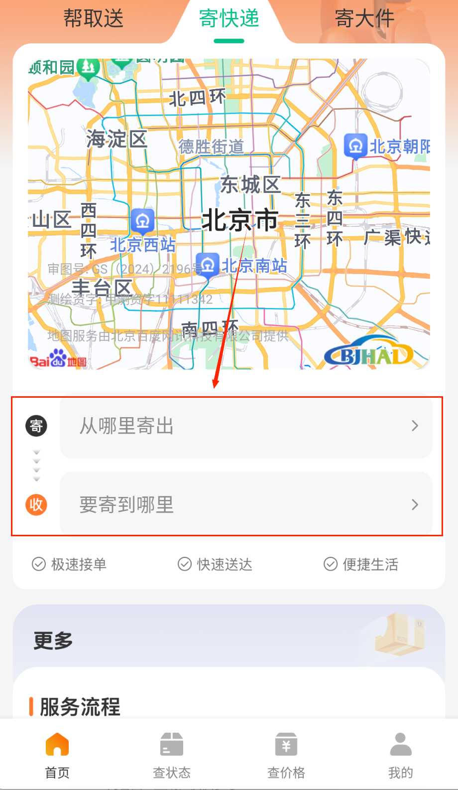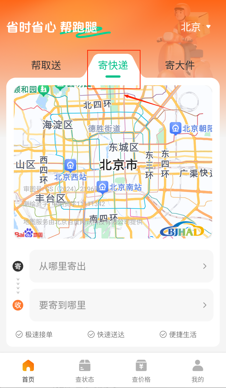 1、打开APP后首先在首页找到"我要寄件"功能入口,点击进入后仔细查看平台支持的配送物品类型列表和相关注意事项说明。