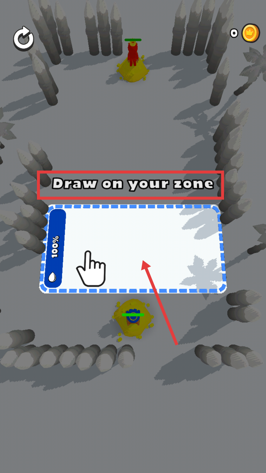 1、在【Draw-on-your-zone】区域绘制,利用【100%】资源启动行动,规划路径抢占战场先机。
