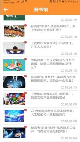 1、图书馆,提供给用户各种精彩资讯和职业专业信息,任由用户查看。