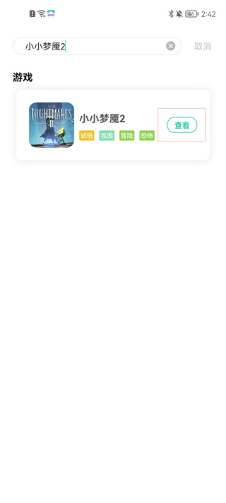 5、如果你想找具体某一款游戏,可以点击右上角的搜索按钮进行关键词搜索。点击查看即可进入游戏详细页面