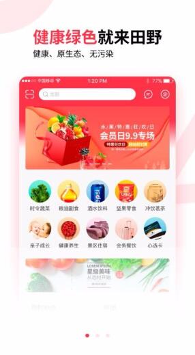 《田野猩选》是一个商城购物软件,为用户提供时令蔬菜、酒水饮料以及坚果零食多种丰富的商品类别专区。软件以绿色、健康、无污染为主题,为用户提供健康的食材和商品服务,还以附近消费为主要推送服务项目,汇集了附近丰富的生活商品资源,可以从平台上看到附近的生鲜超市等门店信息,还能享受同城配送服务。