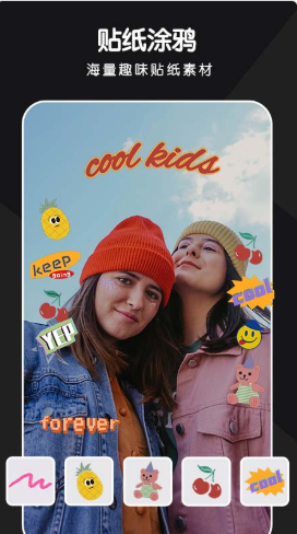 2、全栈P图修图高品质手机照片编辑软件,各种滤镜和贴纸免费。