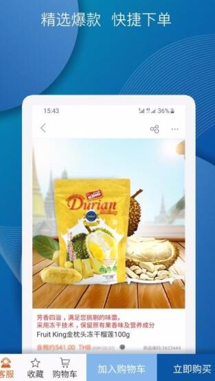 1、丰富的商品详情页面工具,这里面有客服、收藏以及购物车多种功能。