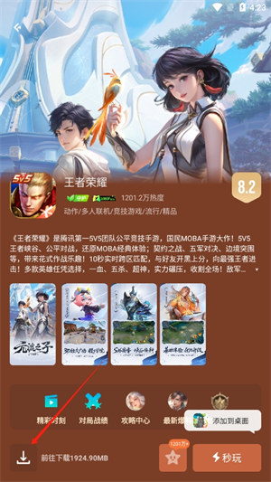 2、进入游戏页面点击“下载”;