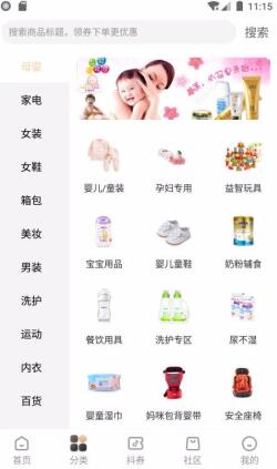 2、丰富的分类中心列表,这里有母婴、家电、美妆以及箱包等丰富分类操作。