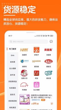 1、自由挑选品牌,可以按照里面的品牌分类找到想要进货的品牌商品。