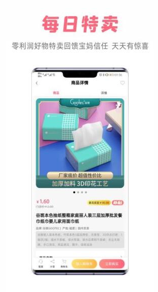 《宝妈货架》是一个省钱的购物平台,提供价格优惠的商品,在线看清楚,让您随意搜索,获取优质商品进行购买,更好的解决用户购物难题,让用户在线购物 . 您可以获得更多帮助,快速解决您的购物需求,增加您的购物体验,在平台上轻松使用。平台提供的产品有质量保证,用户可以在平台上放心购买。